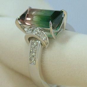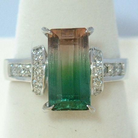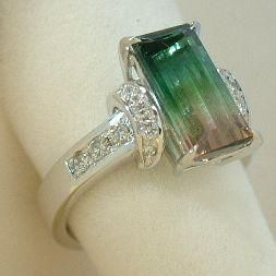 Bicolord tourmaline ring PtバイカラートルマリンリングT3.45ct,D0.32ct,